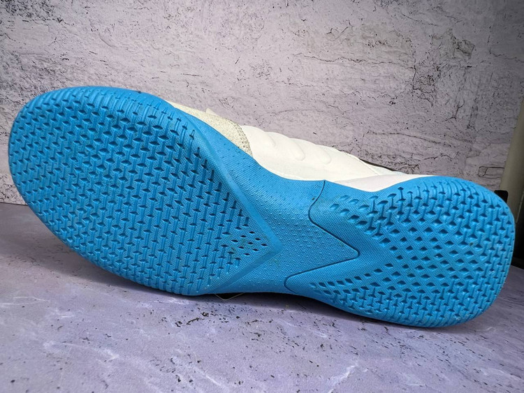 زیره لاستیکی باعث چسبندگی عالی به کفپوش سالن میشود و از سر خوردن جلوگیری میکند. این نوع زیره برای حرکات سریع، تغییر جهتهای ناگهانی و کنترل بهتر در فوتسال بسیار مناسب است.
